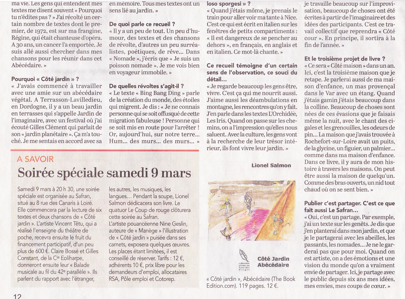 « Côté Jardin » un abécédaire de 52 textes écrits entre 1972 et 2019 – Récits, contes, chansons, et textes oulipiens…. un voyage aux visages multiples entre le jardin autour de la maison, le jardin du dedans, celui que l’on cultive et le jardin cosmique aux horizons infinis…